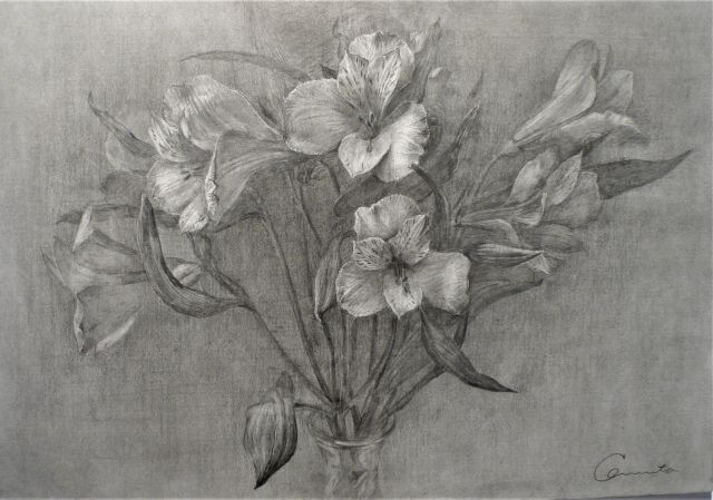対象となる人やモノをモノクロで表現する「素描」、空間,奥行,雰囲気,色彩までも感じます。